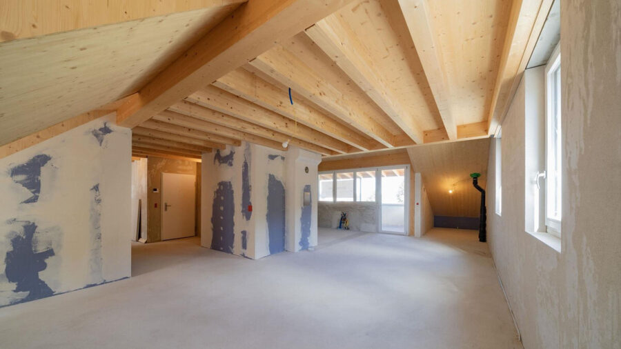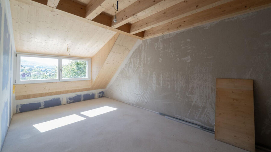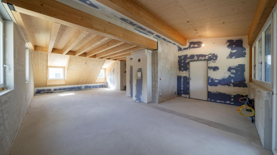 Die angebotene Dachgeschosswohnung befindet sich im Rohbau und eröffnet Ihnen eine aussergewöhnliche Gestaltungsfreiheit. Der Grundriss lässt unterschiedliche Varianten zu: Sie wählen, ob zwei Kinderzimmer oder alternativ ein Gästezimmer in Kombination mit einem offenen Büro umgesetzt werden sollen. Auch der Innenausbau folgt ganz Ihren Vorstellungen – von den Bodenbelägen über die Küchengestaltung bis hin zur Badezimmereinrichtung, alles kann individuell auf Ihre Bedürfnisse abgestimmt werden.